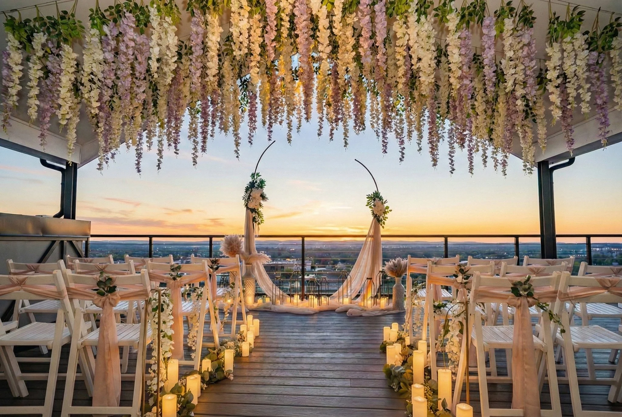 Ceremony: Private deck with panoramic skyline views.